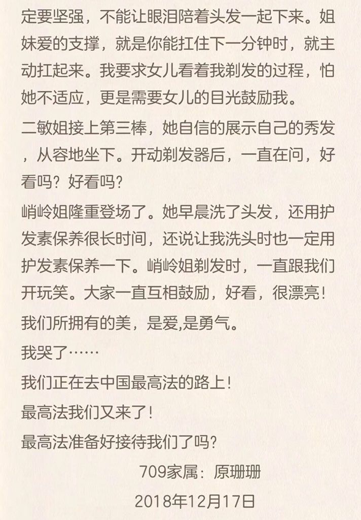 709维权律师家属削发抗议:“我可以无发,你不能无法” (图) (2018年12月17日)