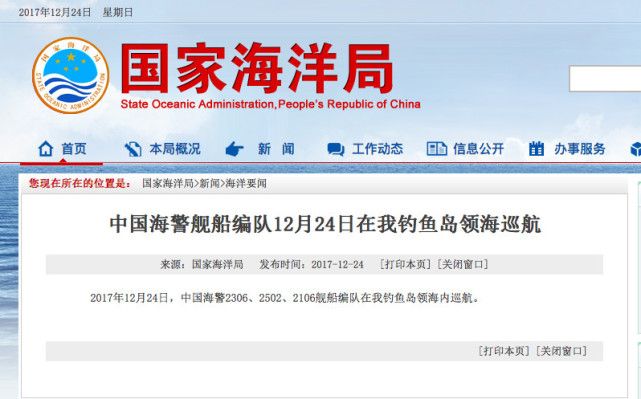 第27次 中海警3舰船编队钓鱼岛领海巡航 (图) (2017年12月25日)