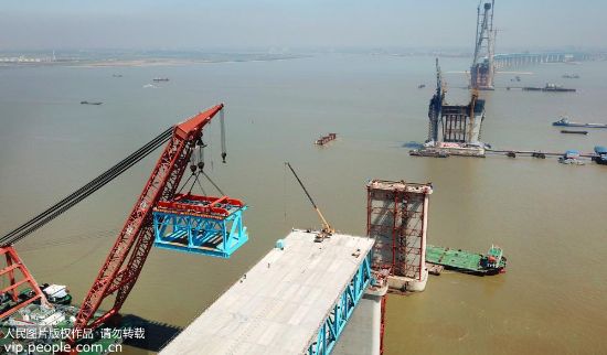 视频:沪通长江大桥一辆架桥机侧翻坠落 (图) (2018年07月21日)
