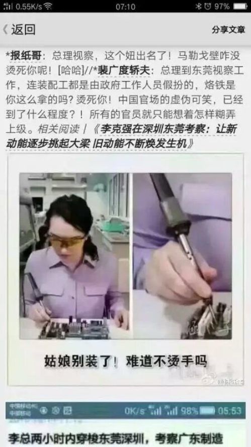 李克强东莞视察,假“工人”装样子露馅 (图) (2016年10月18日)