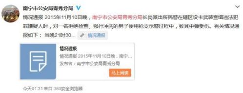 广西遭民警枪击男子身亡 警方:拒检查强行冲闯 (图) (2015年11月29日)