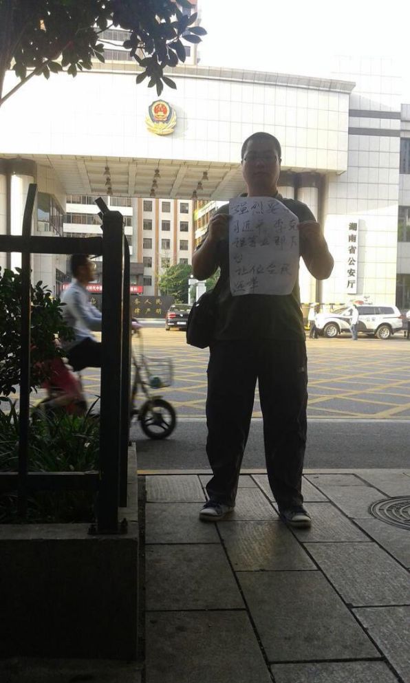 长沙公民举牌声援709律师和公民 两位参与者被国保约谈 (图) (2017年08月01日)