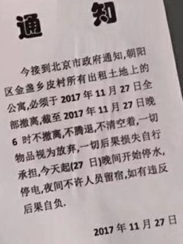 北京暴力驱逐外来人口猛于虎 全面流氓化已是治国新常态 (首发) (2017年11月27日)