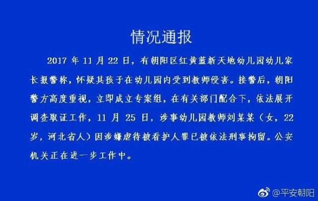 22岁红黄蓝女教师被刑拘 女子造谣被行拘 (图) (2017年11月27日)