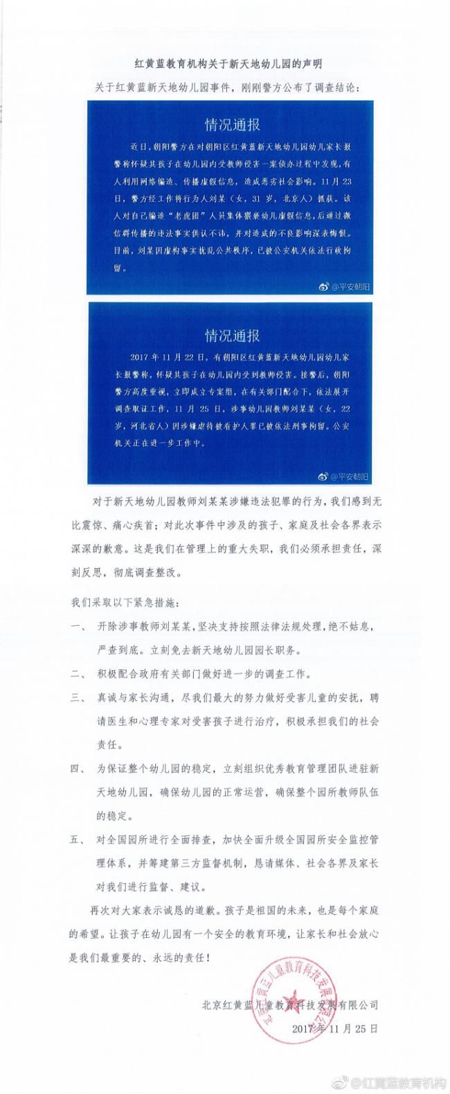 红黄蓝事件:教师开除,园长撤职 (图) (2017年11月26日)