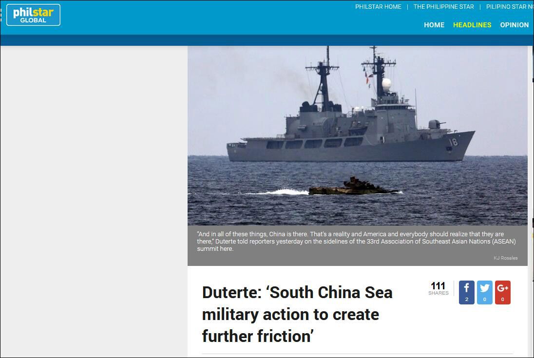 南海争端 菲媒爆中国示意动武 (图) (2017年05月21日)
