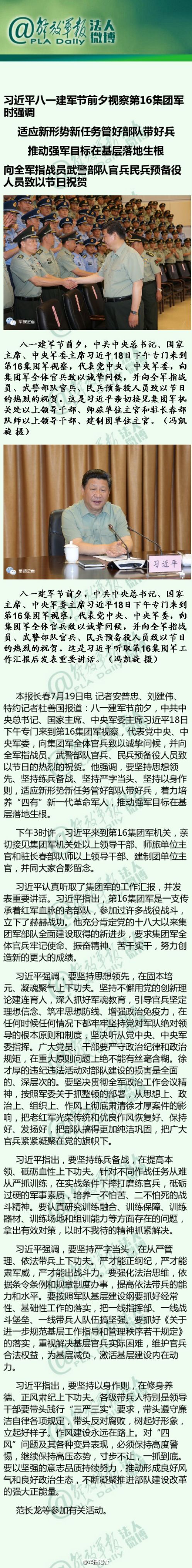 习近平视察第16集团军 肃清徐才厚案影响 (图) (2015年07月20日)
