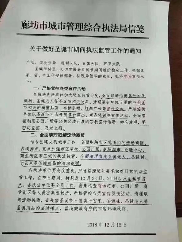 河北廊坊城管局下令取缔圣诞装饰 (图) (2018年12月17日)