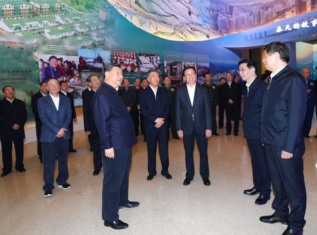 习近平参观时则说,改革开放40年来,在「坚强领导下」,「中华大地发生了感天动地的伟大变革」,而19大则「描绘了中国发展的宏伟蓝图」。